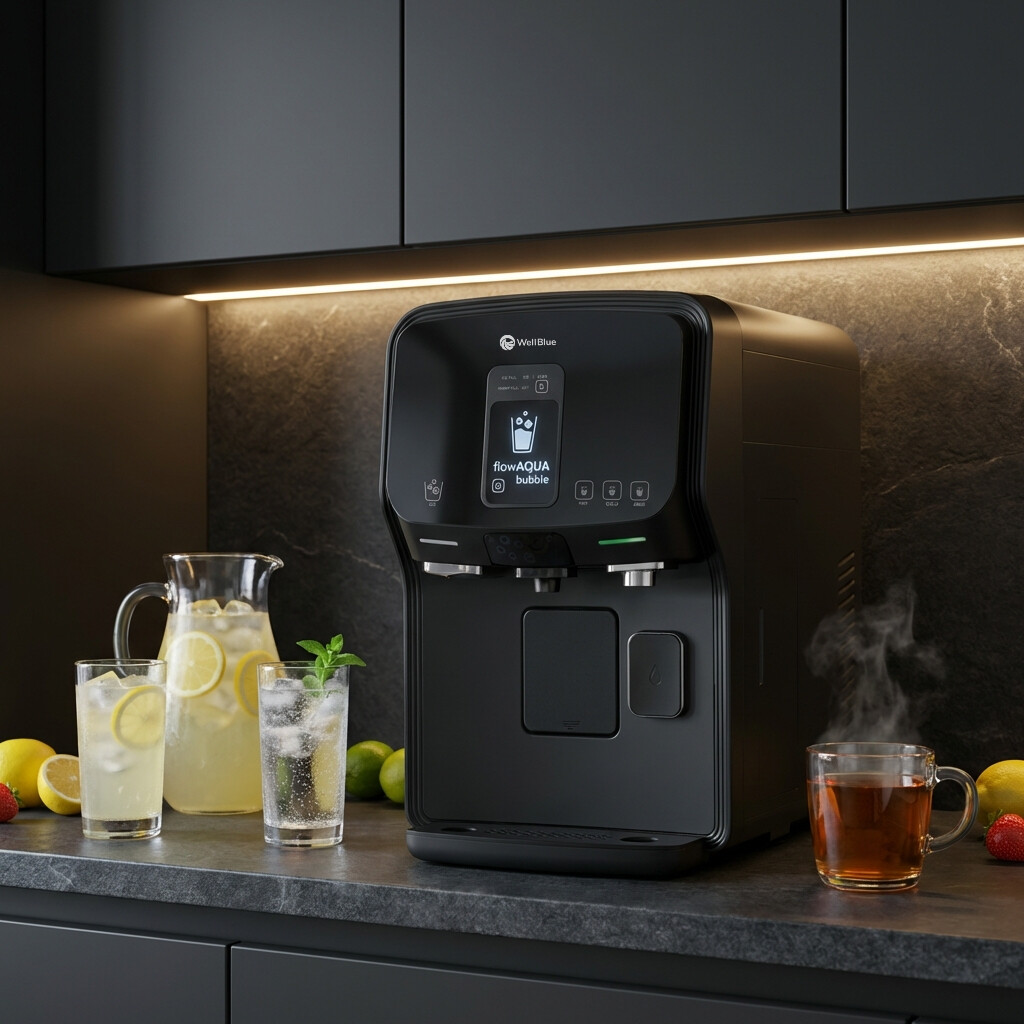 Die flowAQUA bubble (neu: nun auch in schwarz verfügbar!) vereint fortschrittliche Wasserfiltration mit modernem Design und höchster Funktionalität. Ob gekühltes, raumtemperiertes (Ambi), gekühltes kohlensäurehaltiges Wasser, Eiswürfel für Cocktails oder Heißwasser für Tee – dieses Gerät bietet alles, was Sie sich wünschen und sorgt gleichzeitig für höchste Wasserqualität.