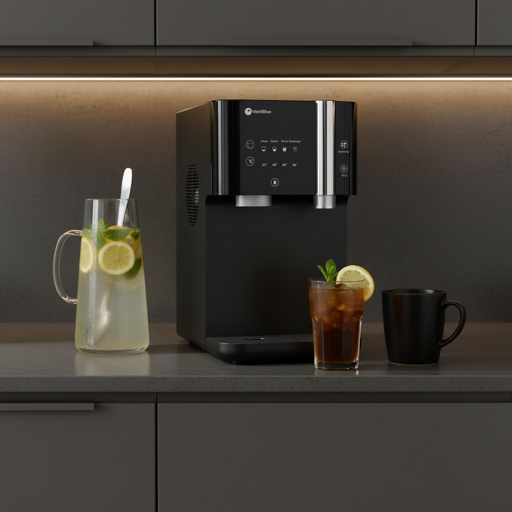 Ein integrierter Sicherheitsmechanismus sorgt dafür, dass heißes Wasser erst nach Bestätigung freigegeben wird. Damit schützen Sie Ihre Liebsten zuverlässig vor Verbrennungen. Zusätzlich informiert die Anlage rechtzeitig über notwendige Wartungen oder Filterwechsel.
